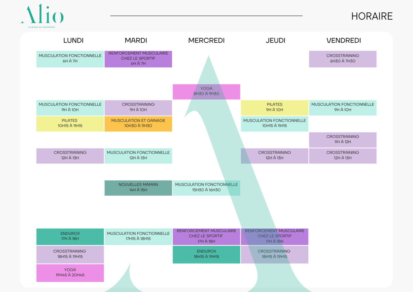Prendre la décision d’investir du temps pour ta condition physique n’en est pas une que tu dois prendre à la légère. Pour atteindre tes objectifs, tu dois investir du temps, de la patience, et certainement une petite dose de transpiration. Mais on te garantit que tu ressortiras de chez Alio avec encore plus d’énergie qu’auparavant !